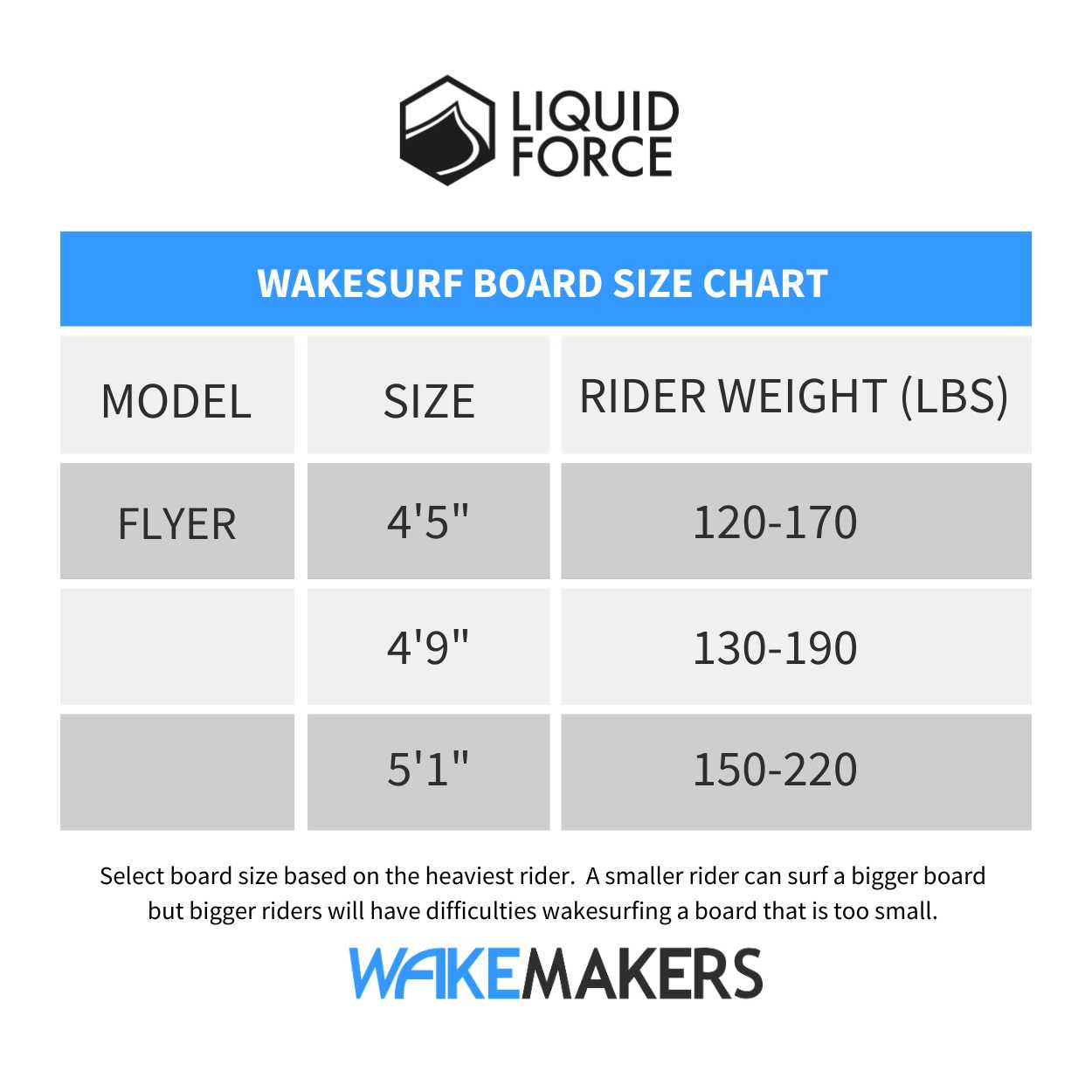 The Liquid Force Flyer Wakesurf Board from the Atomic Series is a thruster-style board that offers drive, speed, and control. Its added volume gives it forward thrust and glide, while the mid-wide tail allows for easy turns in the pocket. The Flyer’s versatility makes it a top choice for wakesurfers seeking a well-rounded board for extended sets on the water.