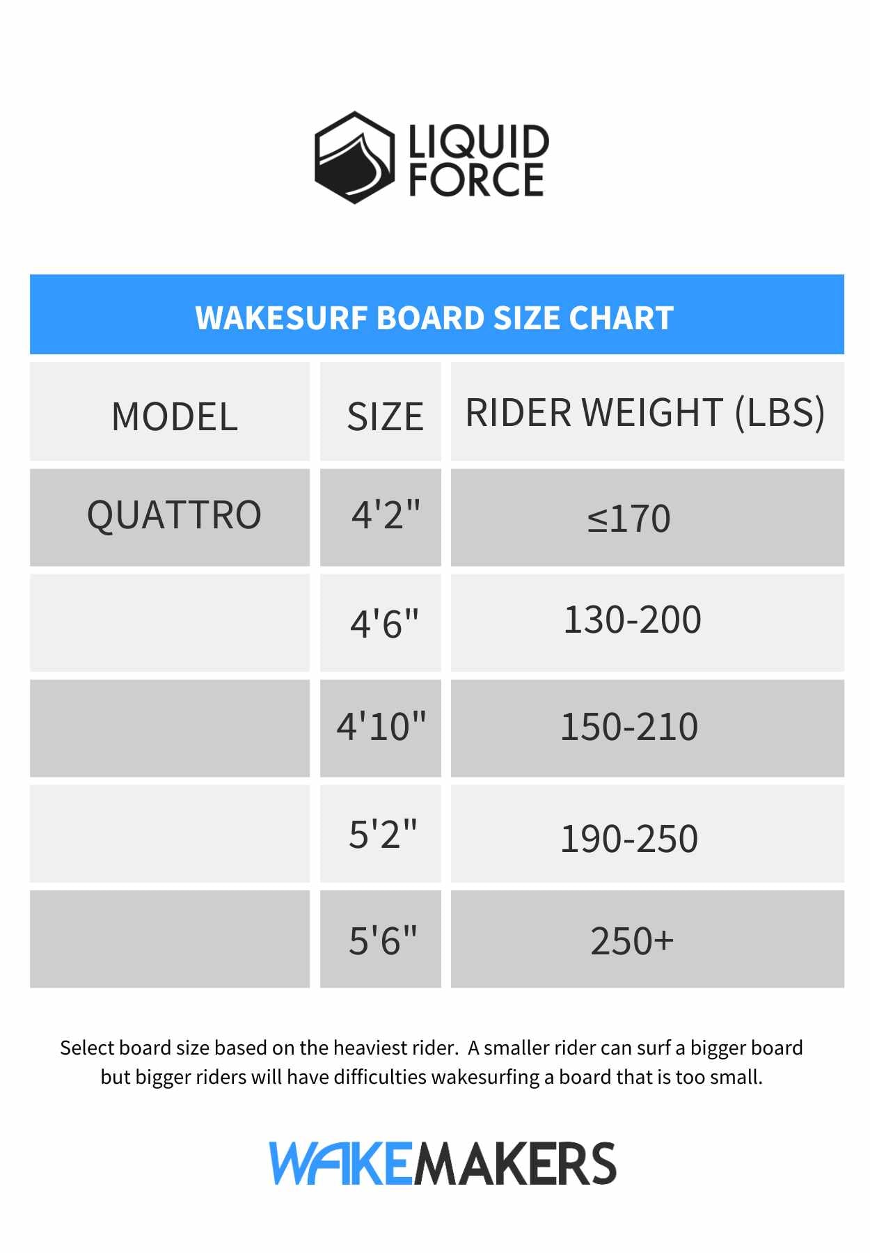 Oh man, is the Liquid Force Design Department stoked to unleash this new surfer. Brand new to the LF Surf Line, introducing – the Liquid Force Quattro! If you liked the POD or Space POD…then the Quattro is the next board you need to add to your quiver. With a familiar V Tail Shape that you’ve come to love, they've rounded out the nose to allow for more fluid bottom turns or cutbacks off the lip. Offered in a wide range of sizes, the Quattro is primed and ready to help elevate your surfing.