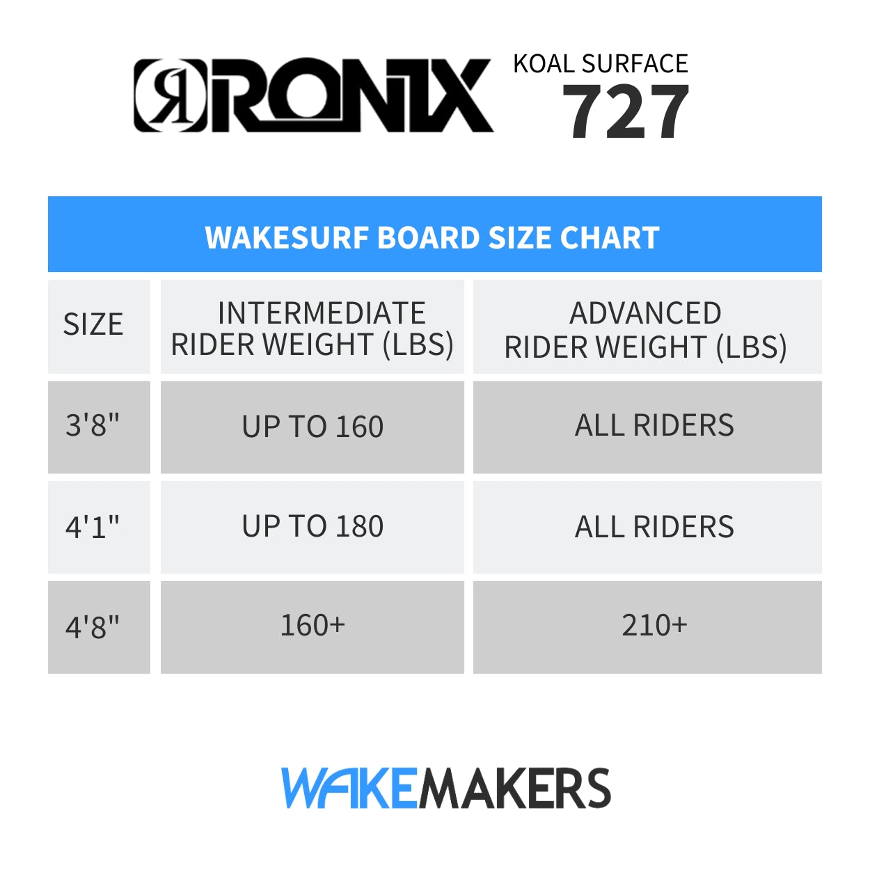 The Ronix Koal Surface 727 is the perfect shape for somebody new to foiling that wants that stable backfoot heavy riding style. Or for high end riders that want to be strapped in working on their aerials. A very consistent, medium-tempo, thin-profile board that will always have you in control. Made with Ronix Koal Surface, a construction incorporating the core of a high end surfer wrapped in a bulletproof Surface Skin. In short, the lightweight feel of your favorite high-end surfer, the durability of your favorite wakeboard, and a skin that breaks up the water for less resistance. The 727 represents the epitome of a proper foil board, catering to essential aspects like deflection, buoyancy, tempo, and including practical features like the included straps for an unparalleled wakefoiling experience.