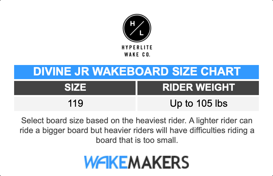 The Hyperlite Divine Girl’s Wakeboard is designed for young female riders learning the fundamentals of wakeboarding. Its forgiving Continuous Rocker and stable shape provide smooth starts, easy turns, and controlled pop for a confidence-building ride.