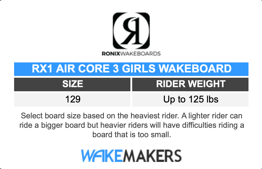 The Ronix RX1 Air Core 3 Girl's Wakeboard combines the best elements of Ronix's most iconic boards, offering a high-performance ride tailored for young, advanced riders. By blending the speed and consistency of the RXT with the explosiveness of the One series and utilizing the same lightweight Air Core 3 foam found in the Supreme series, the RX1 delivers a unique hybrid rocker that balances speed and pop. Designed for pre/early teen riders, this board provides a high energy, low swing weight experience, allowing kids to ride at their full potential. With features suited for boat riding, the RX1 offers the same performance adults enjoy, now scaled down for the next generation of wakeboarding enthusiasts. Get ready to see the RX1 Crew push the limits with this exciting new board.