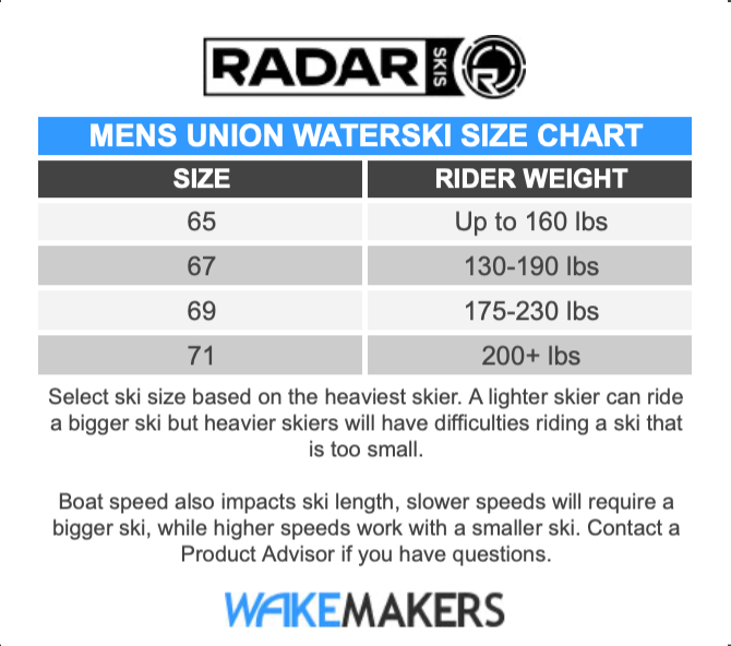 The Radar Union Waterski is designed to make skiing easier and more fun for every rider. Easy out of the hole and quick to roll onto edge, the Union is one of those rare shapes that blends performance with forgiveness — a true split personality on the water.