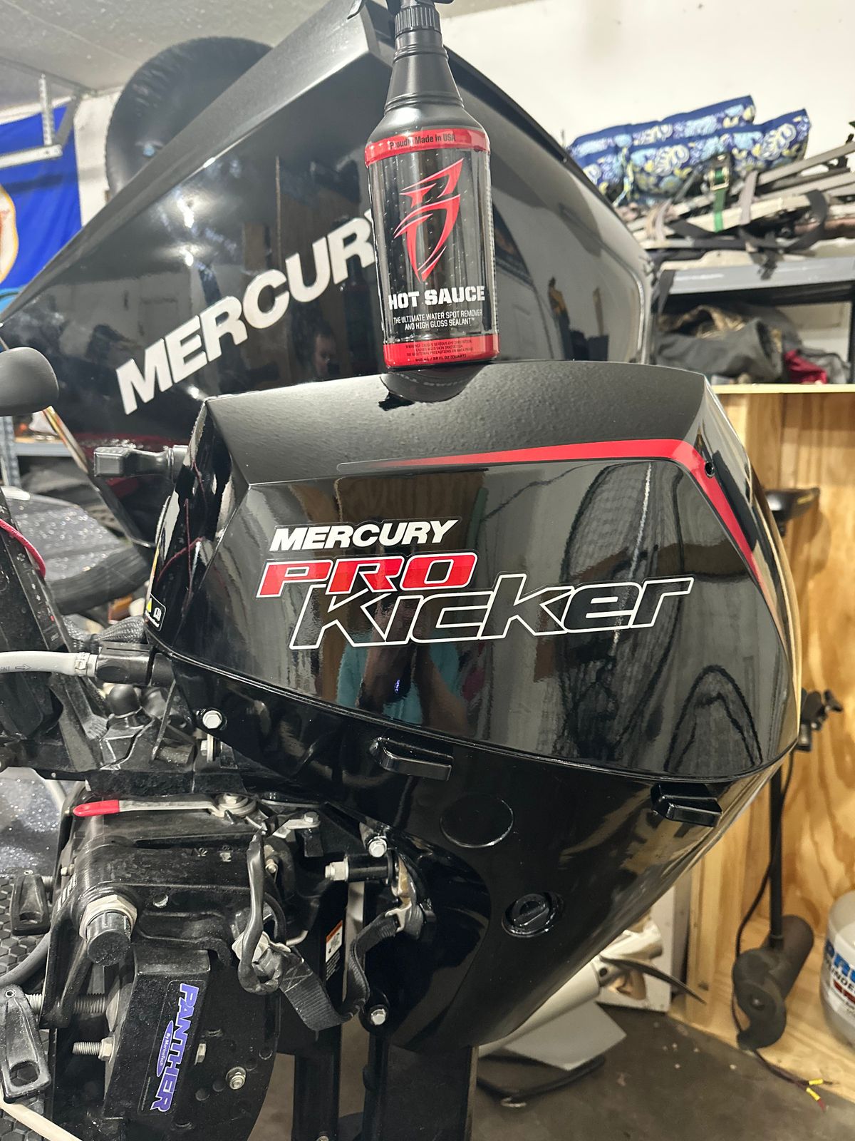 Hot Sauce makes boat maintenance easy, simply spray on and wipe off to remove water spots and leave behind a coating of protective polymers.